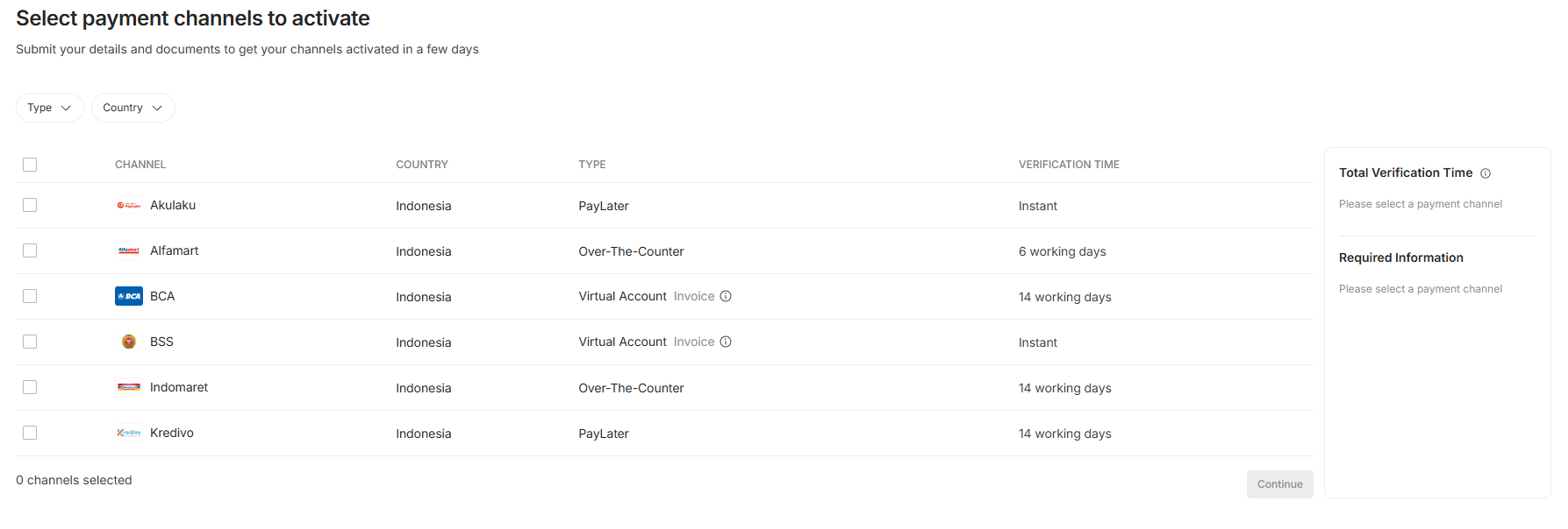 - Click on the option "Activate Payment Channels"