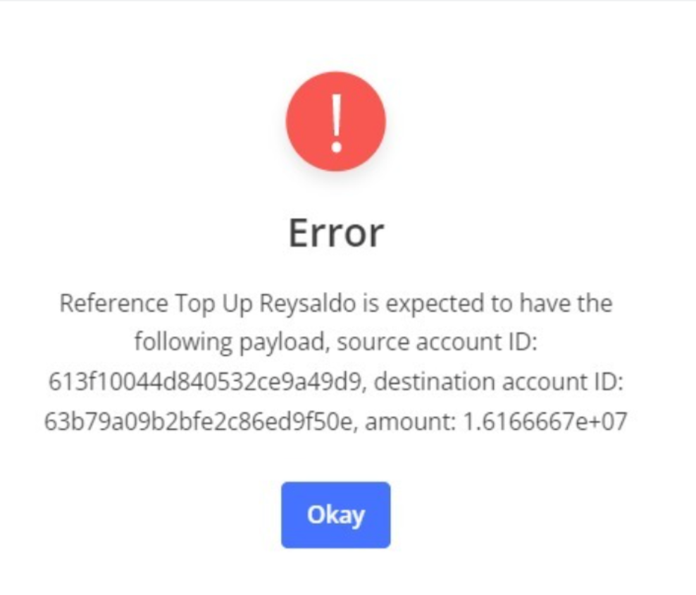 - Jika referensi transfer saldo sama dengan referensi transfer saldo lainnya, maka Anda akan menerima error berikut: